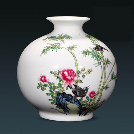 Small vintage ceramic flower vases ornament with birds and flowers