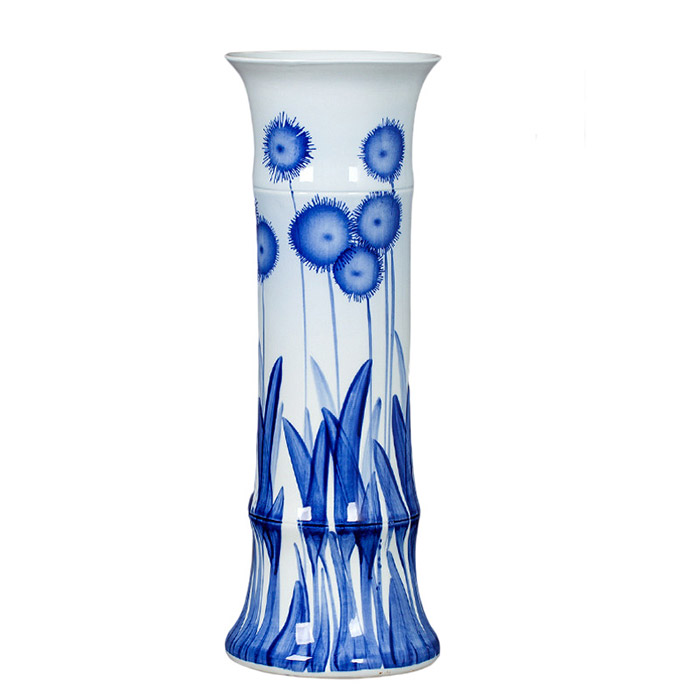 Hand painted tall blue and white ceramic vases for grasses multiple