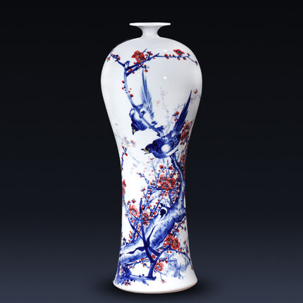Designer hand-painted blue and white ceramic flower vase for bedroom