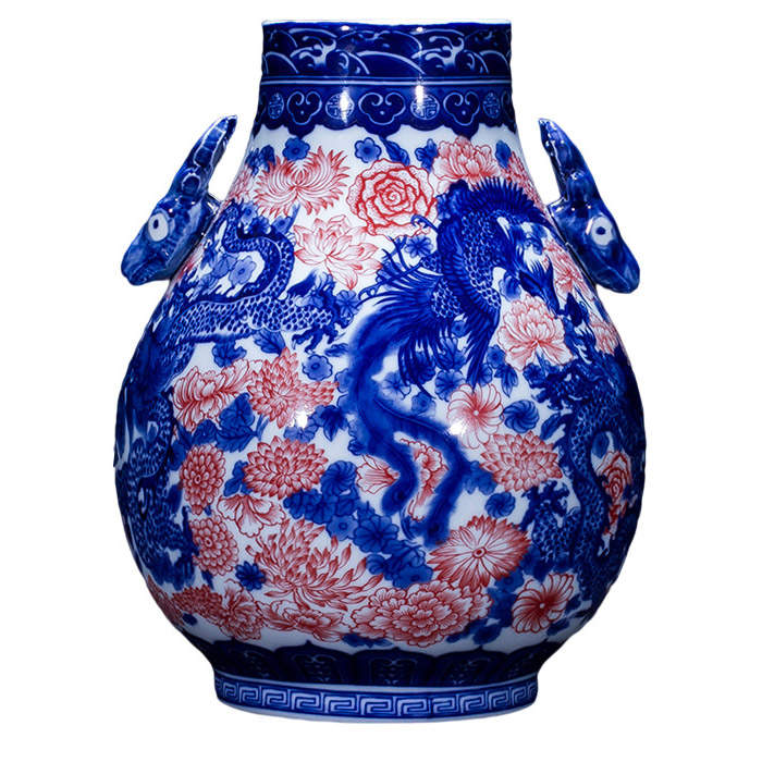 Vintage blue and white glaze red flower vase ornament multiple styles