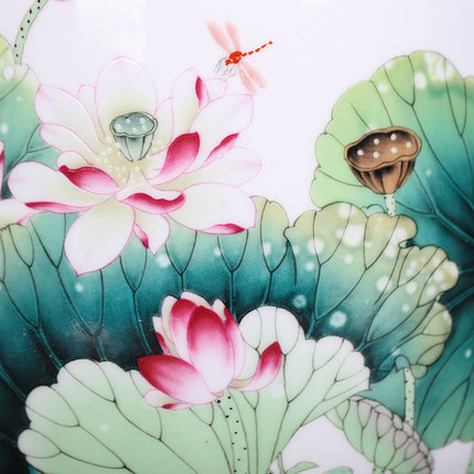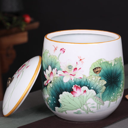 Jingdezhen pretty large airtight ceramic pot with lotus painting china