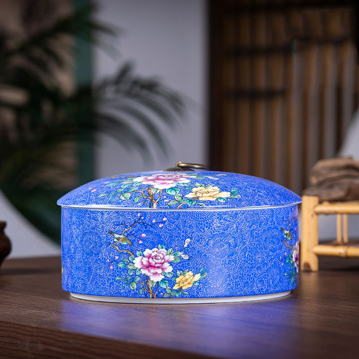 Sealed moisture-proof blue enamel ceramic storage container