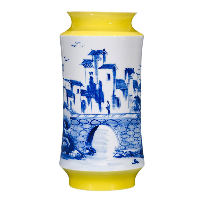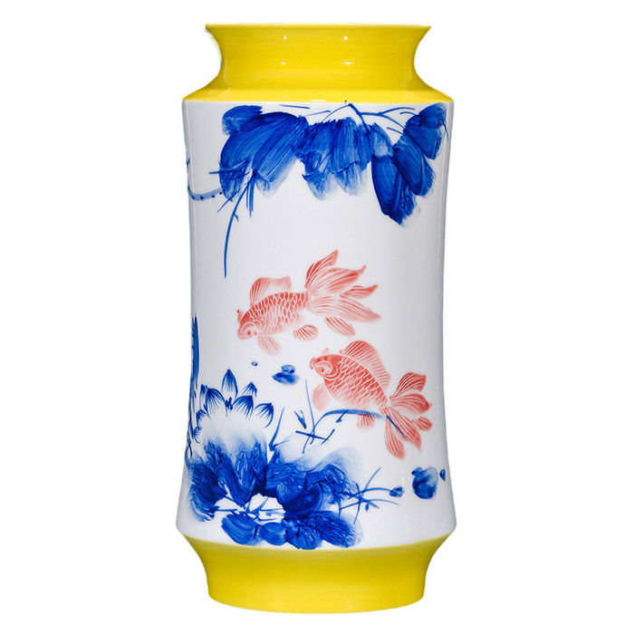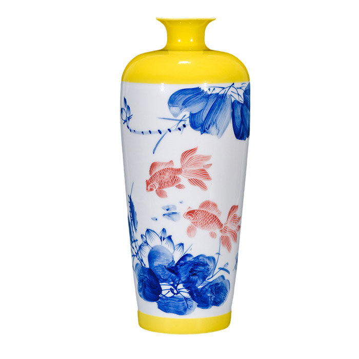 Hand painted yellow background flowers vases and ornaments multiple