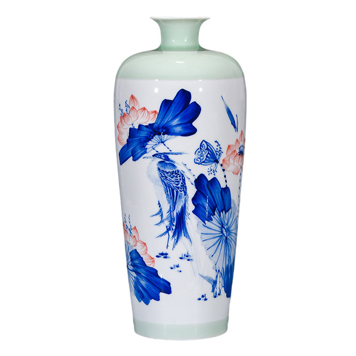 Hand painted green background flowers vases and ornaments multiple