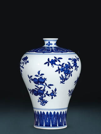 Vintage qing dynasty qian long blue and white ceramic flowers vase