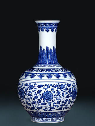 Vintage qing dynasty qian long blue and white ceramics vase ornaments