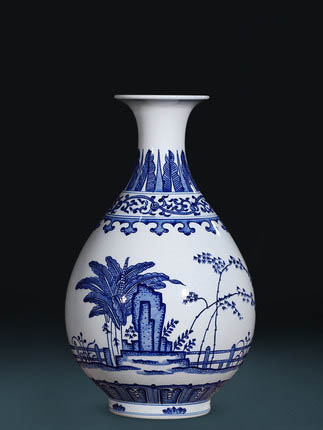 Vintage qing dynasty qian long blue and white glazed red ceramics jar