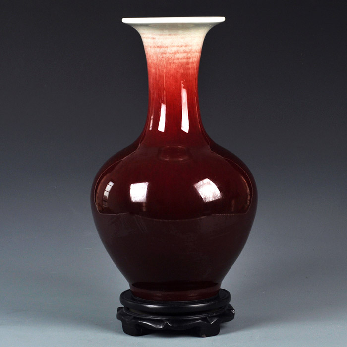 Hand painted burgendy red chinese design ceramic flower vase ornaments