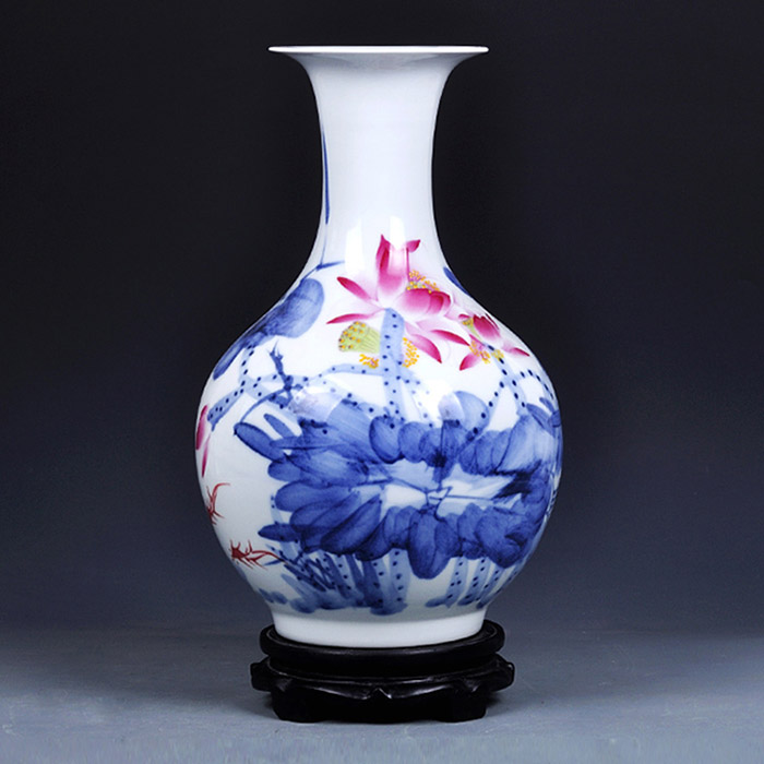 Jingdezhen hand painted blue and white underglaze red ceramic vase