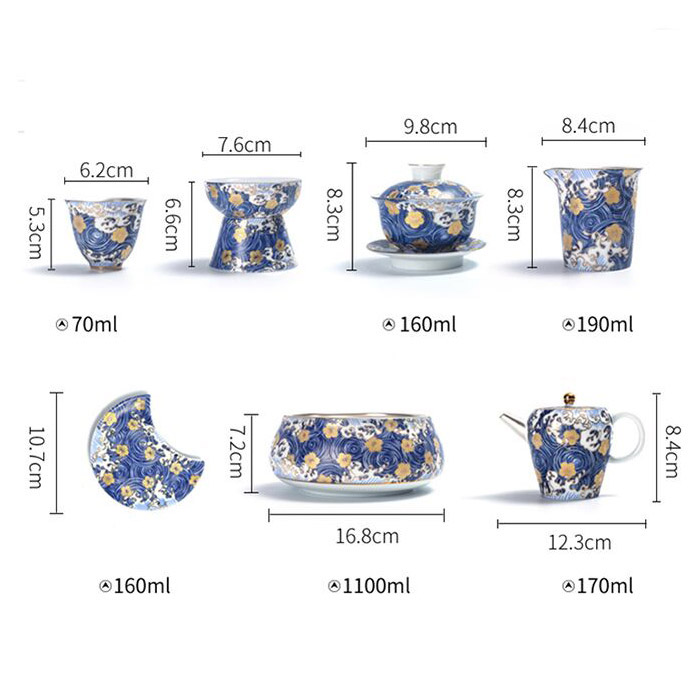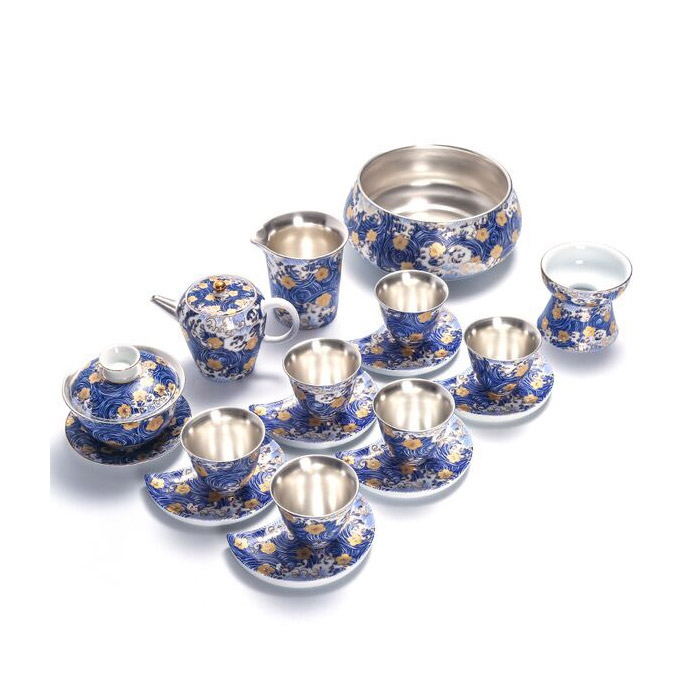 Silver tea set enamel color 999 sterling silver set kung fu tea cup