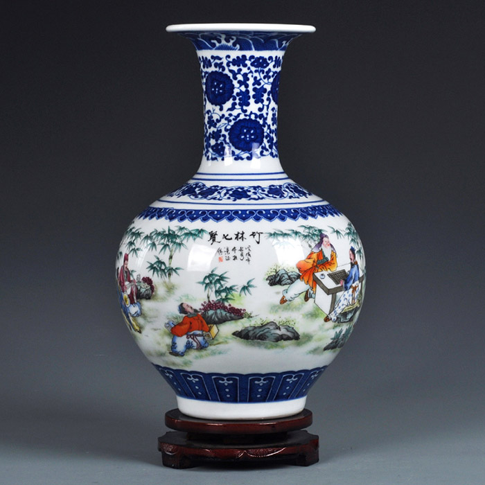 Retro Chinese blue and white porcelain vase ornament for living room