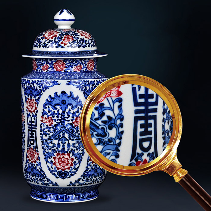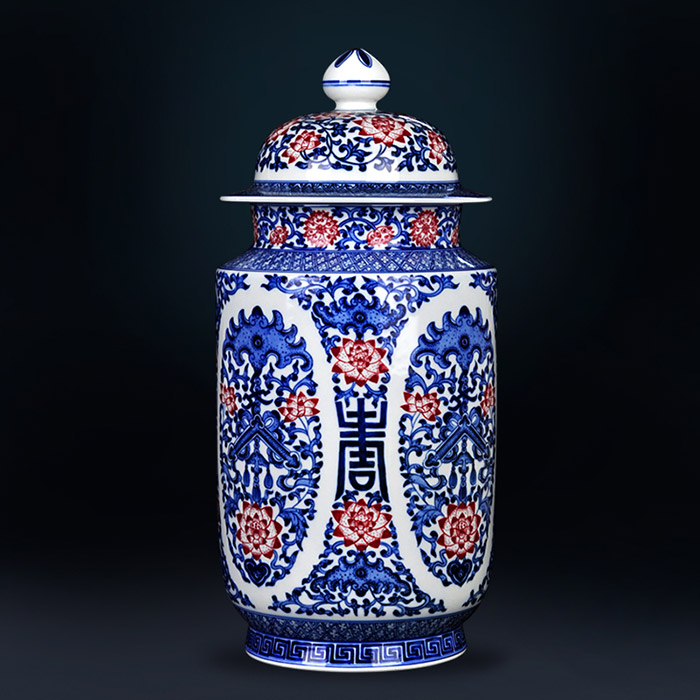 Hand painted vintage blue and white enamel red ceramic vase for home