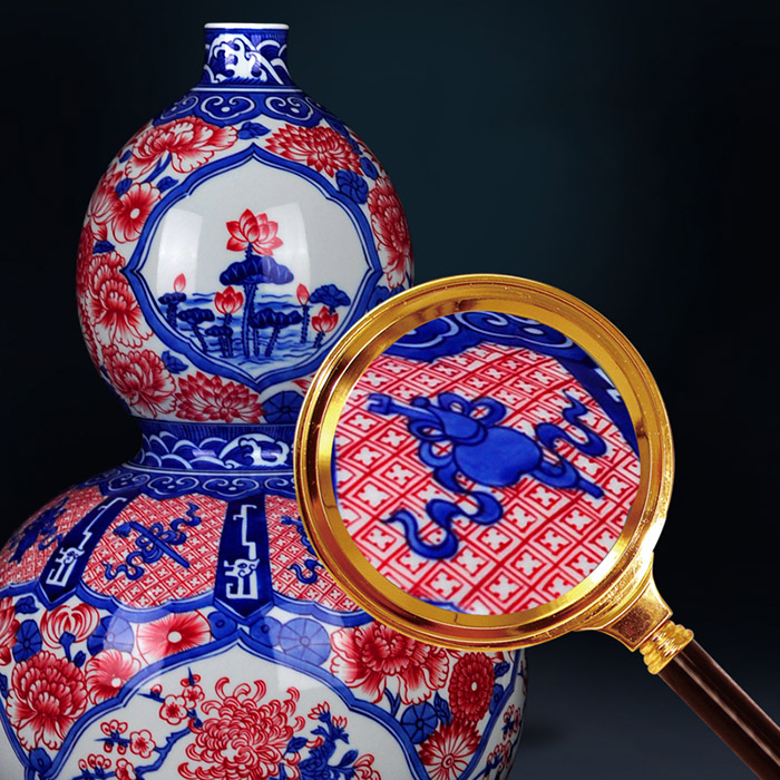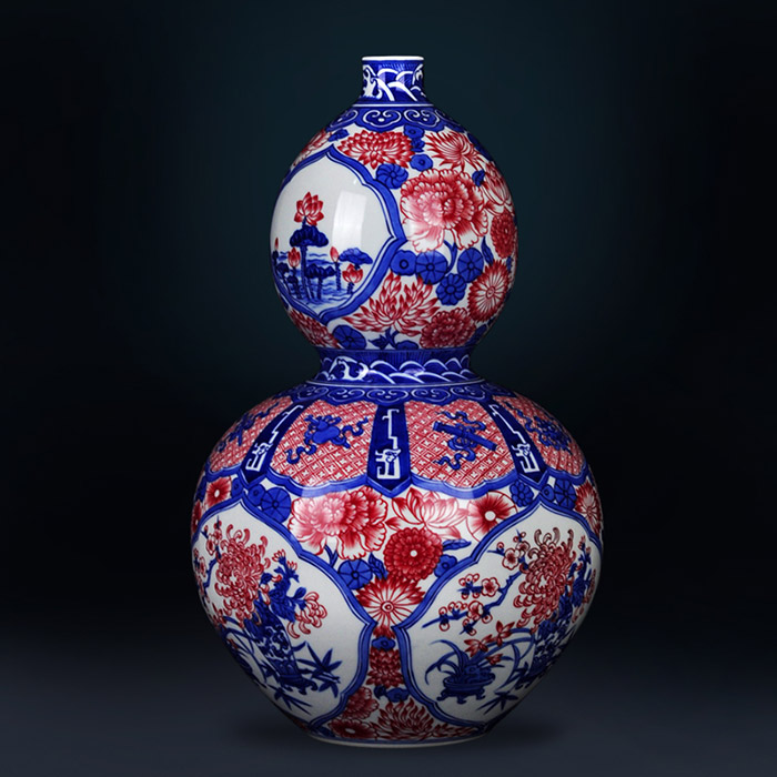 Hand-painted retro blue and white glazed red ceramic flower vase