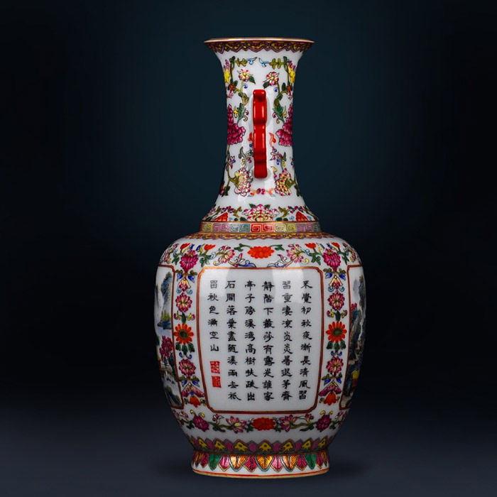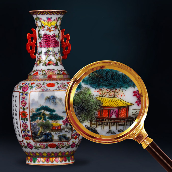 Hand painted binaural pastel Landscape ceramic vases and ornaments