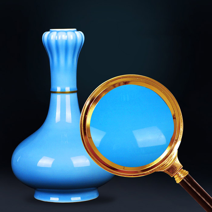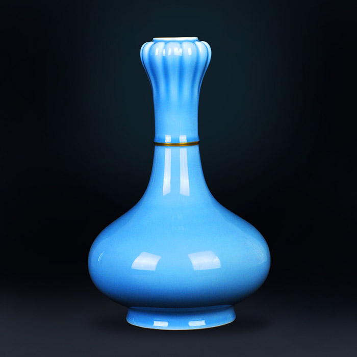 Chinese simple retro blue garlic shape ceramic vase for living room