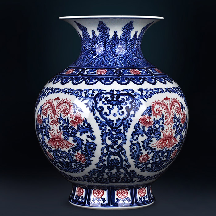 Vintage hand painted blue and white porcelain pomegranate ceramic vase