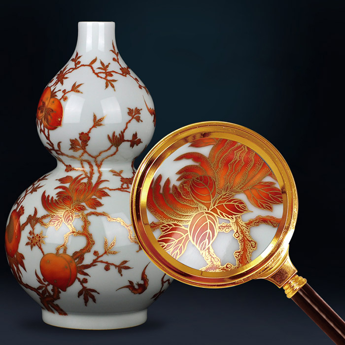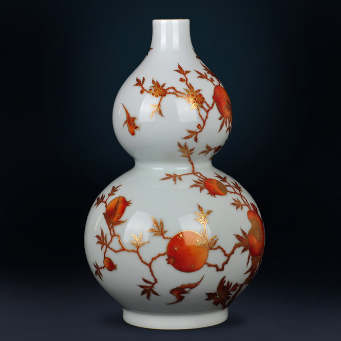 Chinese hand painted gold color gourd shape ceramic vase and onament