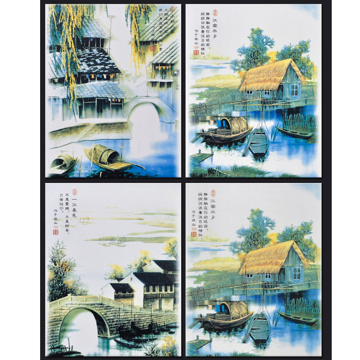 Rectangle Jiangnan water village landscape ceramic wall hanging plates