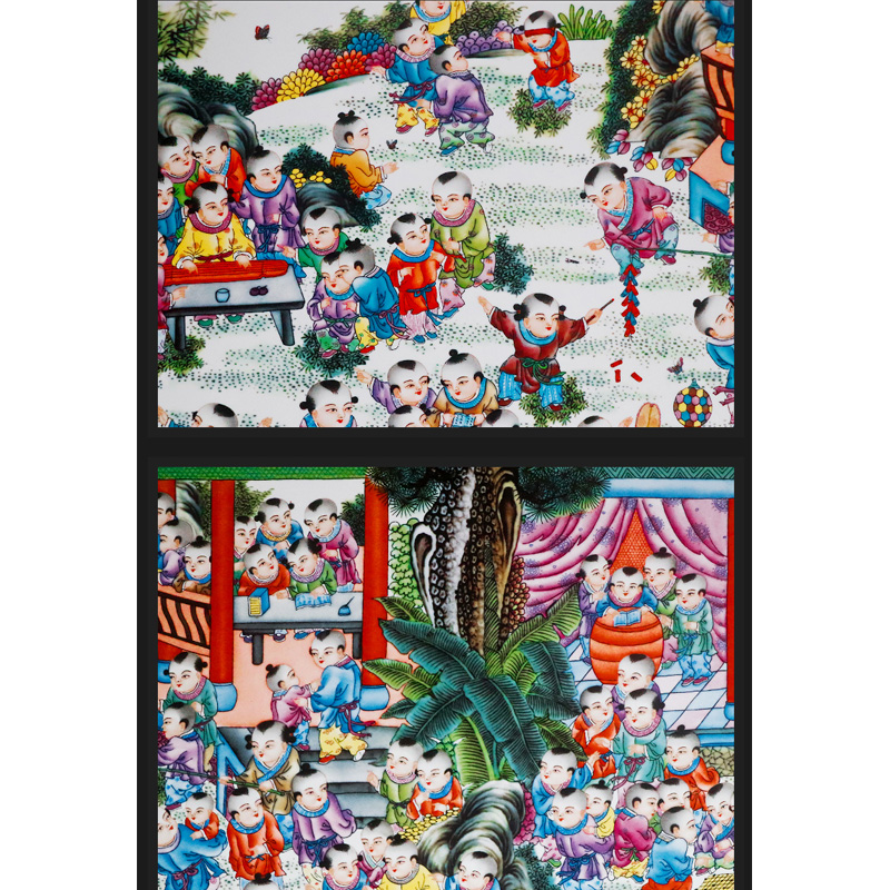 BaiZi children dining room sofa background wall ceramic painting