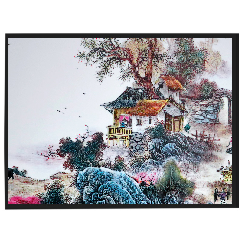 Jiangnan scenery dining room sofa background wall ceramic painting