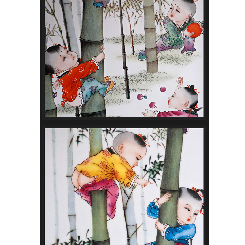 Boys and bamboo dining room sofa background wall ceramic painting
