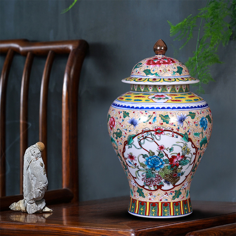 Jingdezhen ceramic enamel storage jar with lid home decoration