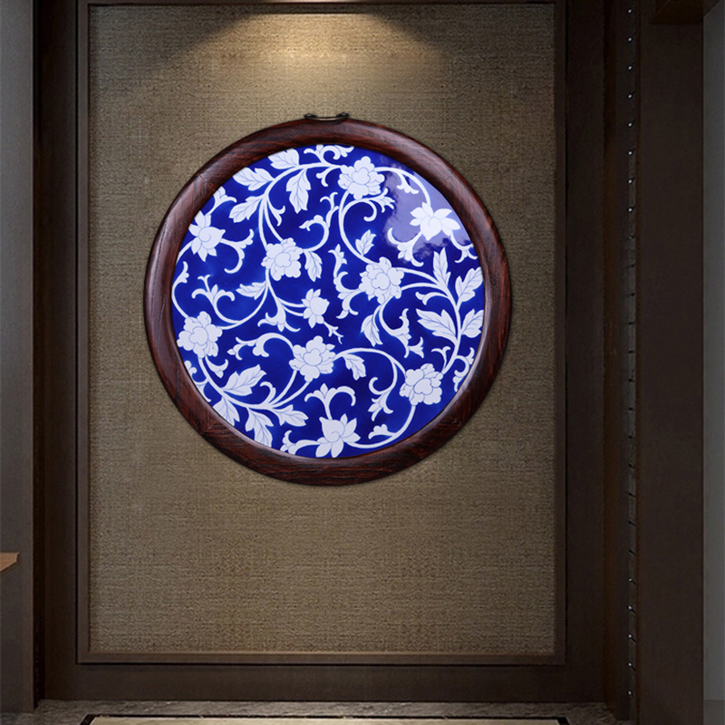 Blue and white tangle lotus porcelain plate painting mural living room