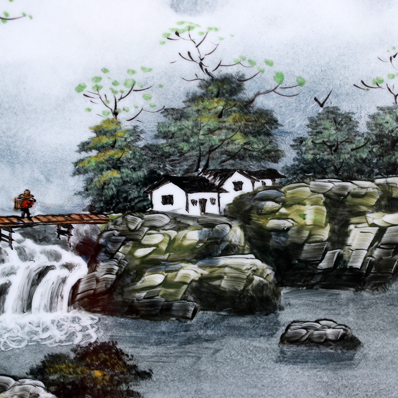Jingdezhen pastel mountain township cloud porcelain plate painting