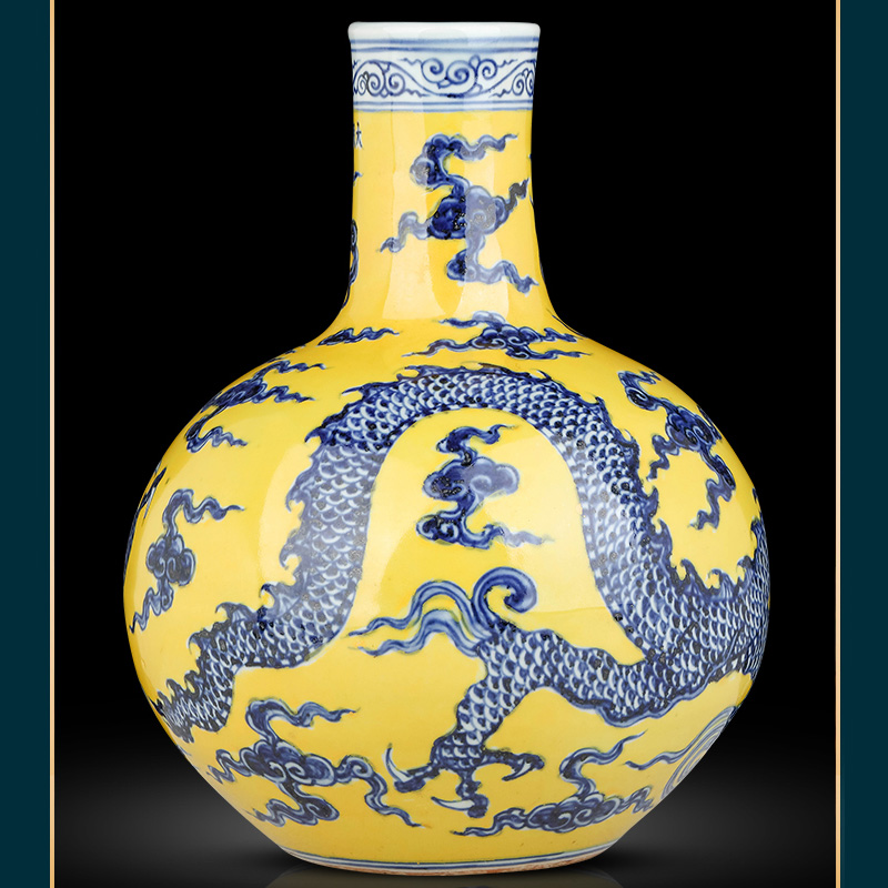 Jingdezhen vintage yellow background dragon pattern porcelain vase