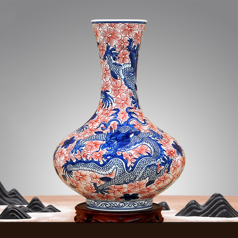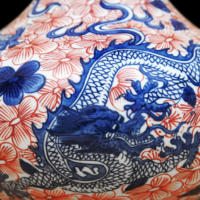 Hand-painted hundred flowers and dragon pattern flat Ceramic vase