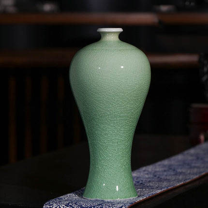 Jingdezhen antique green mermaid shape cracked glaze ceramic vase