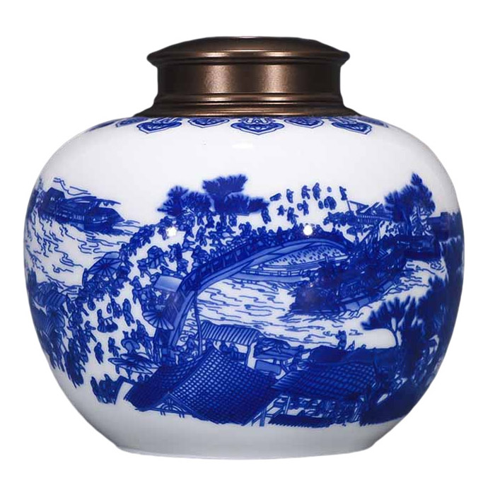 Vintage landscape painting sealed moisture-proof ceramic pots multiple