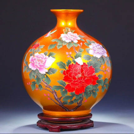 Handmade decorative golden china crystal glazed ceramic flower vase