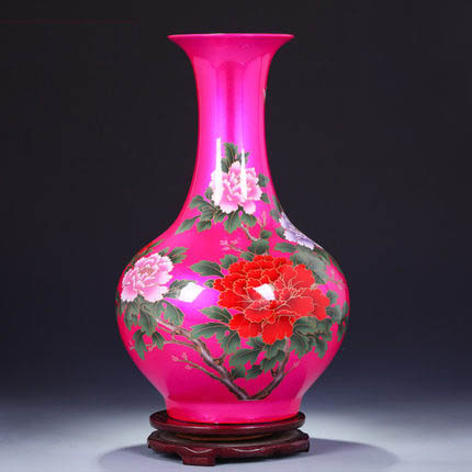 Decorative pink china crystal glazed ceramic ornamental vase