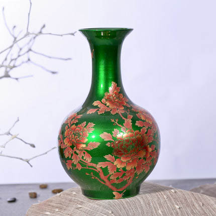Trendy green crystal glaze ceramic vase and ornament for flowers