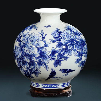 Pomegranate shape blue and white peony pattern bone china ceramic vase