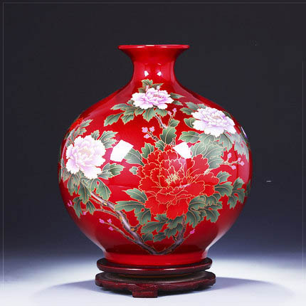 Jingdezhen Red Color Glazed Ceramic Vase Flower Arrangement
