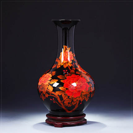 Black color glazed ornamental ceramic vase flower arrangement