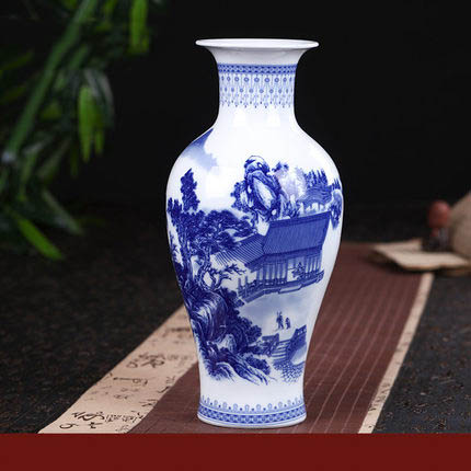 In-glaze Landscape Loft Pattern Fishtail Shaped Ceramic Vase
