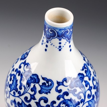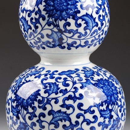 Decorative antique blue and white porcelain tangled lotus gourd vase