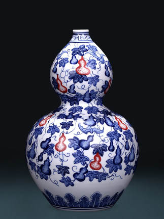 Vintage qing dynasty qian long blue and white glazed red ceramic vase