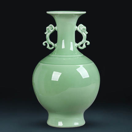 Jahrriesnge green binaural vase cna0914 Porcelain