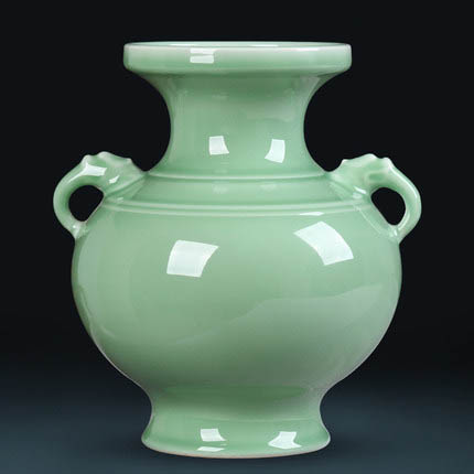 Two ears mint glazed green chinese porcelain vases and ornament