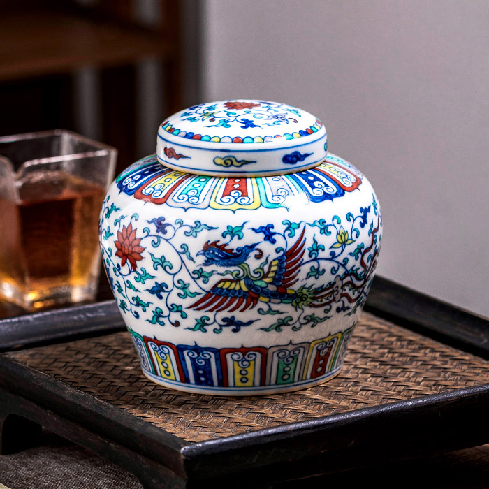 Vintage hand painted blue and white porcelain sealed tea storage jars