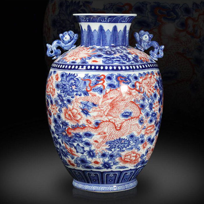 Vintage chinese blue and white underglaze red porcelain vase for home