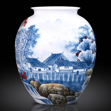 Designer large hand painted houses painting ceramic vase living home