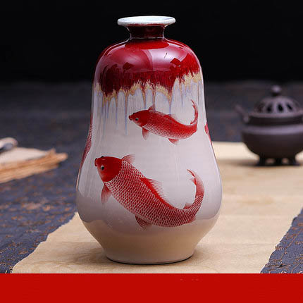 Kiln cracked glaze gourd shaped red fish ceramic vase