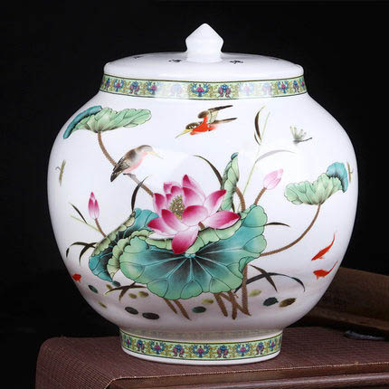 Lotus and Bird Ceramic Vase with Lid for Flower Arrangement Home