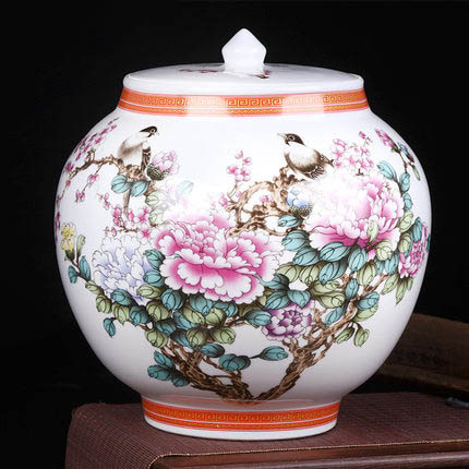 Peony flower and bird with lid ceramic vase flower arrangement home