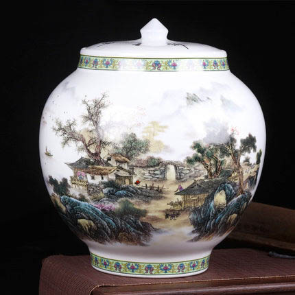 Country landscape with lid ceramic vase flower arrangement home